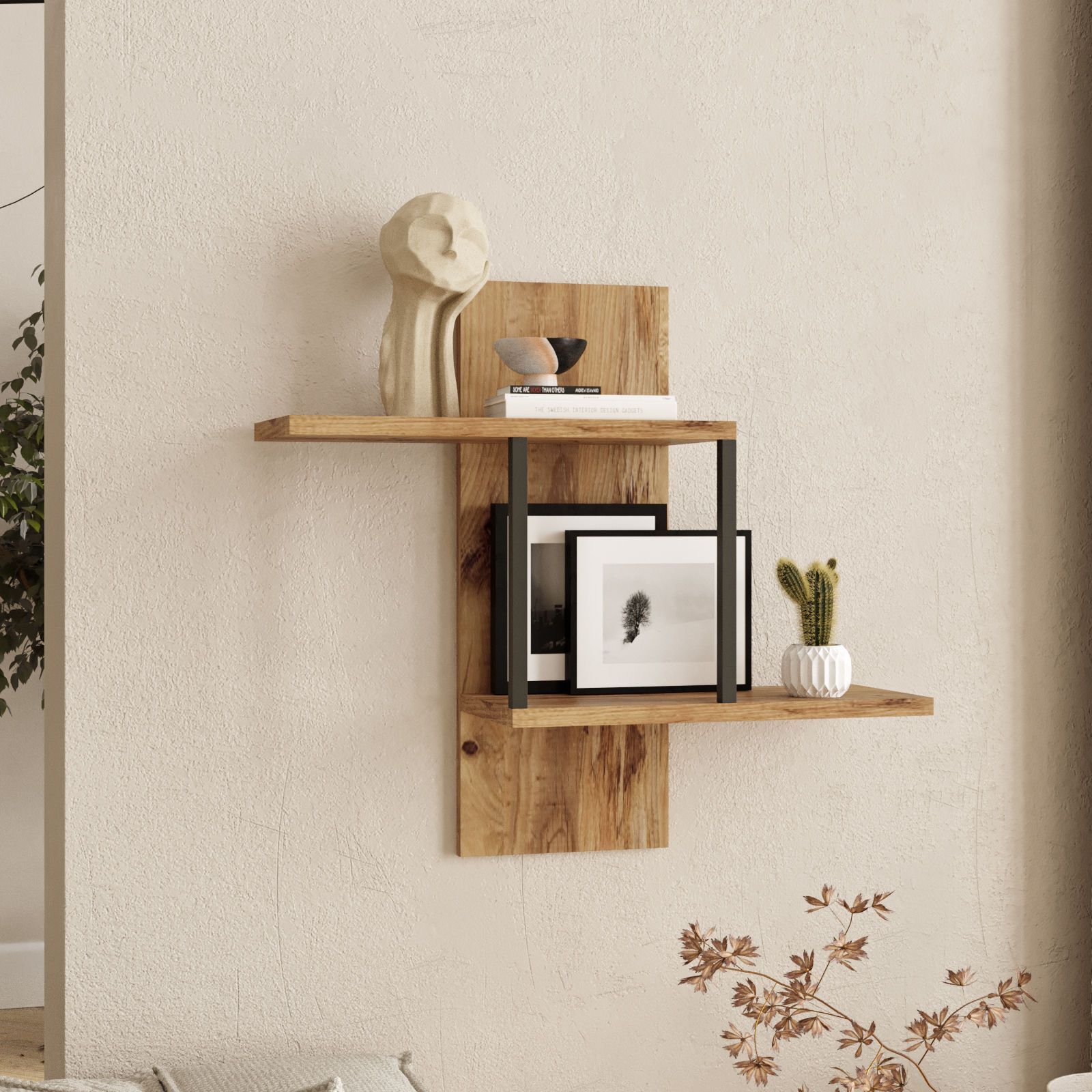 Vegghylle laget av tre.