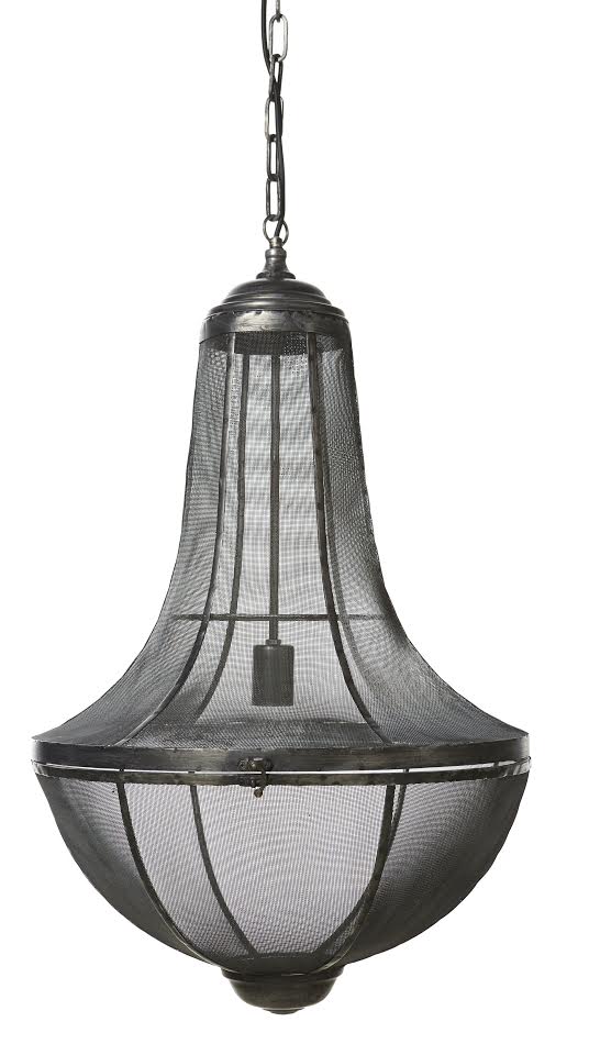 Vintage W42 taklampe er bygd opp av tynt sort metallnett i et tøft design. En utrolig vakker takkrone med et herligt skinn!
