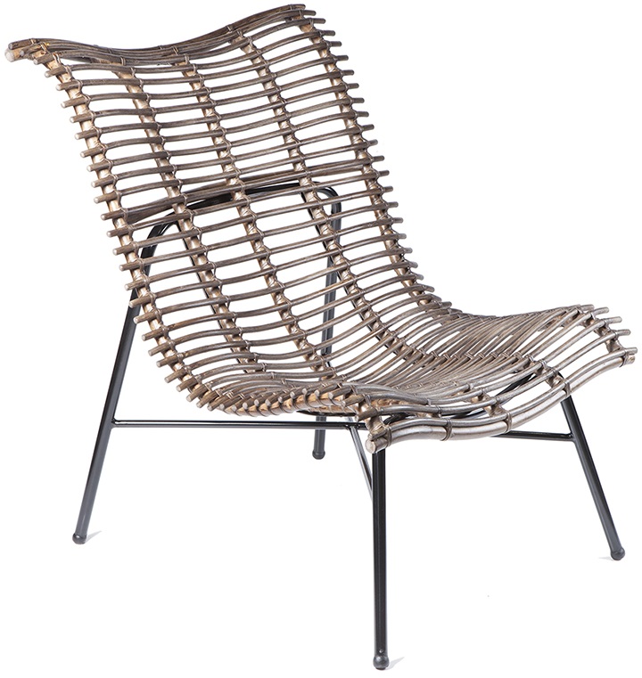Stilren lenestol, laget i tøff brun rotting og svartmalte metallben. Passer perfekt inn i med mer ennet, for eksempel ved bokhylla for et koselig og behagelig lesehjørne.