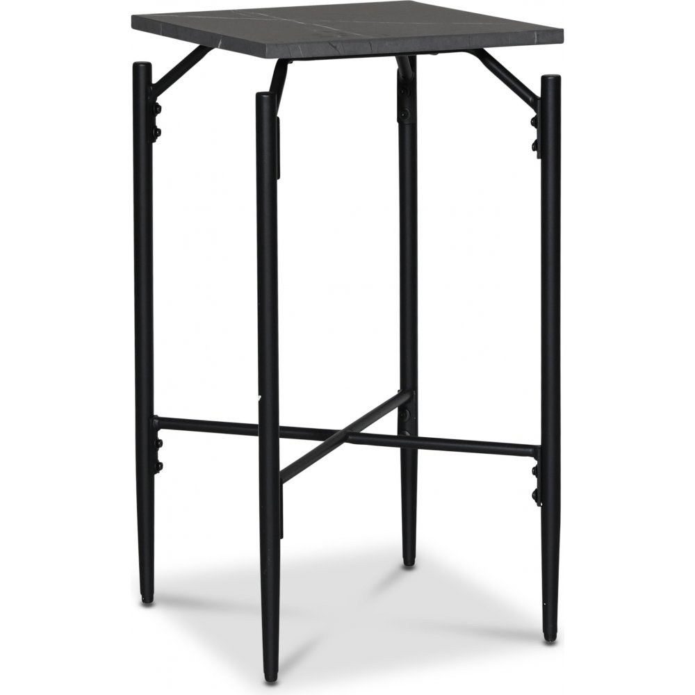 Wayne møbelserie er en prisgunstig serie hvor det er lagt vekt på utførelse og design. Spisebord med bordplate i slitesterk grå marmorfolie med svart metallunderstell. Perfekt som både nattbord eller lampebord.