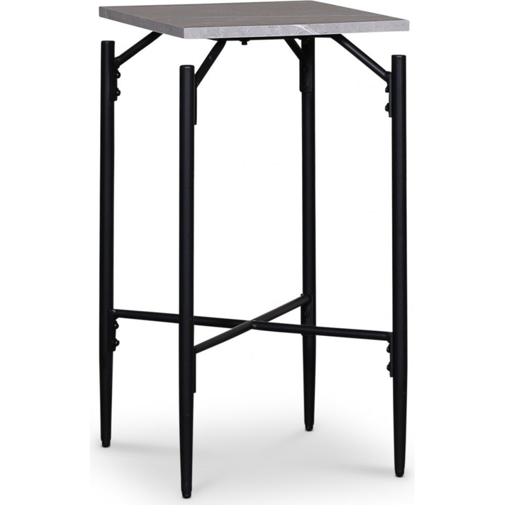 Wayne møbelserie er en prisgunstig serie hvor det er lagt vekt på utførelse og design. Sidebord med bordplate og hylle i slitesterk lys grå marmorfoliering med svart metallunderstell. Perfekt som både nattbord eller lampebord.
