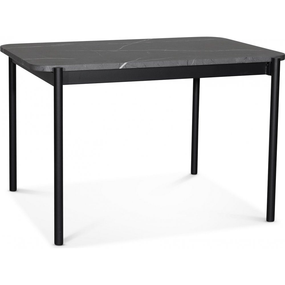 Wayne møbelserie er en prisgunstig serie hvor det er lagt vekt på utførelse og design. Spisebord med topplate i slitesterk grå marmorfolie med svart metallunderstell.
