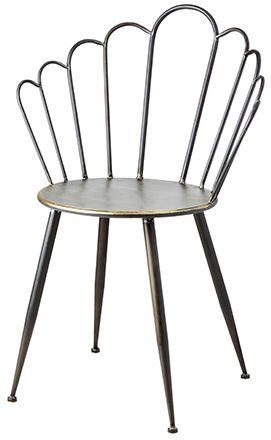 Karmstol som tilfører en industrielt følelse til hjemmet. Stolen er laget av svart/messingfarget jern og er antikbehandlet.