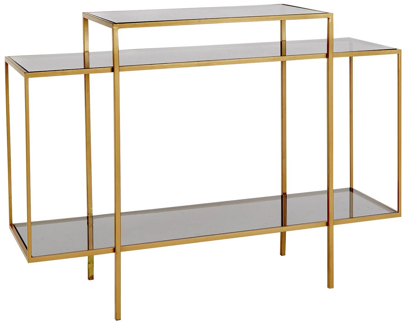 Konsollbord i art deco design med hylle i tonet glass. Leveres montert.
