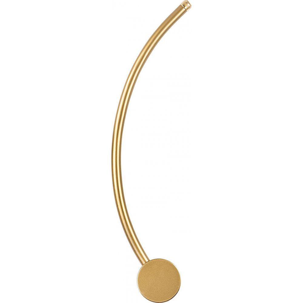 Vegglampe laget av metall pulverlakkert i gullfarge. Lyskilden består av utenpåliggende LED-belysning som lyser med et varmhvitt lys (3000 K).