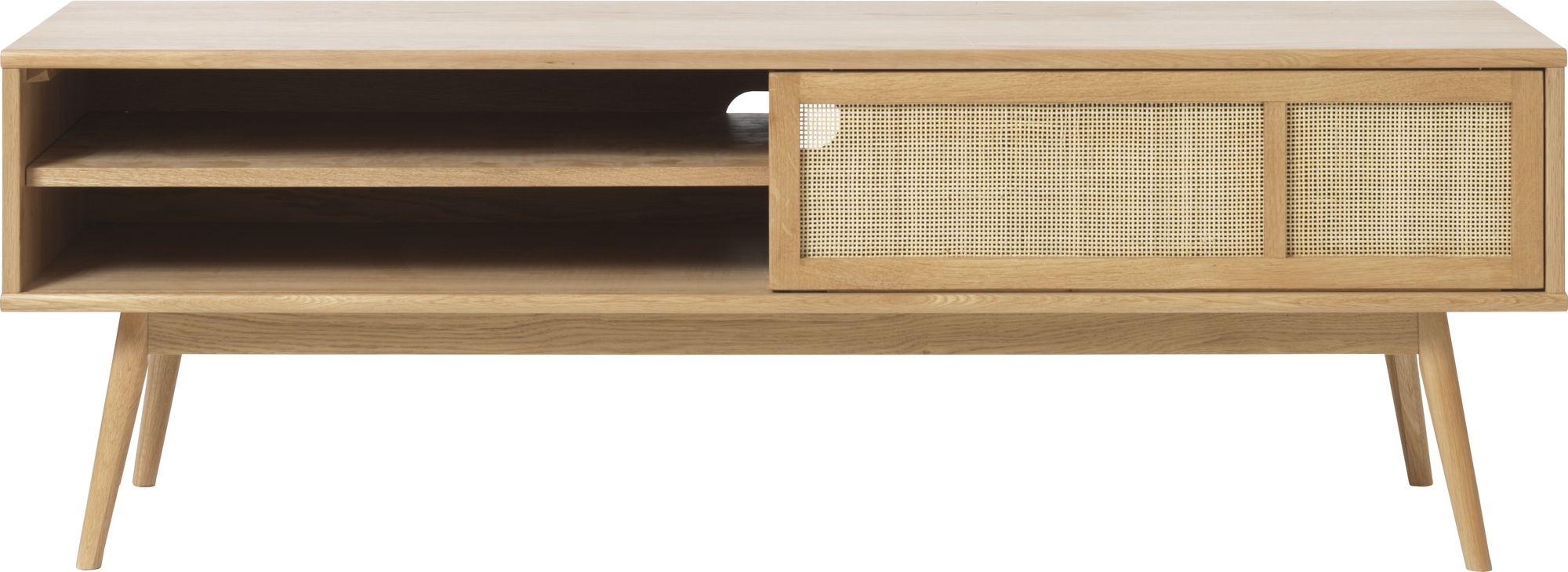 Yuma er en stor serie med oppbevarings-, bord og konsollbord. Yuma mediabenk i oljet eik med rottingdetaljer, skyvedør og justerbar hylle.
